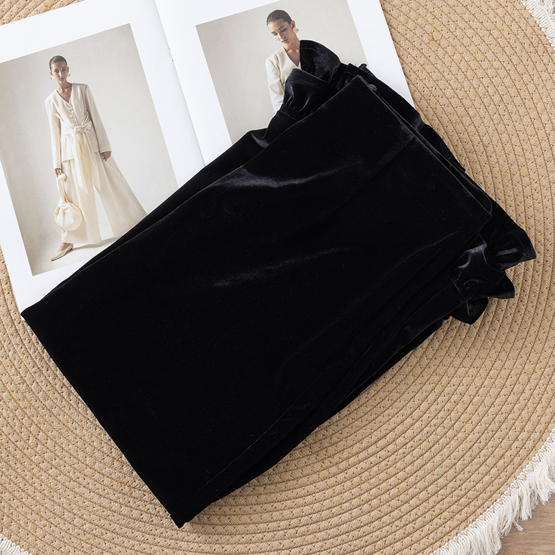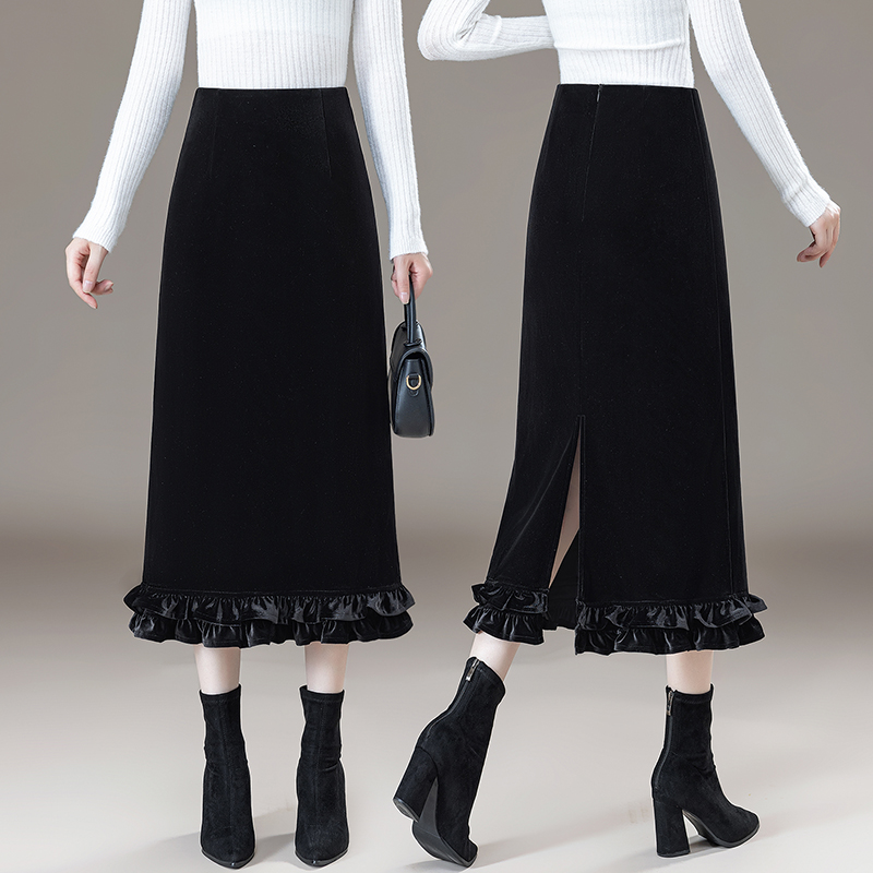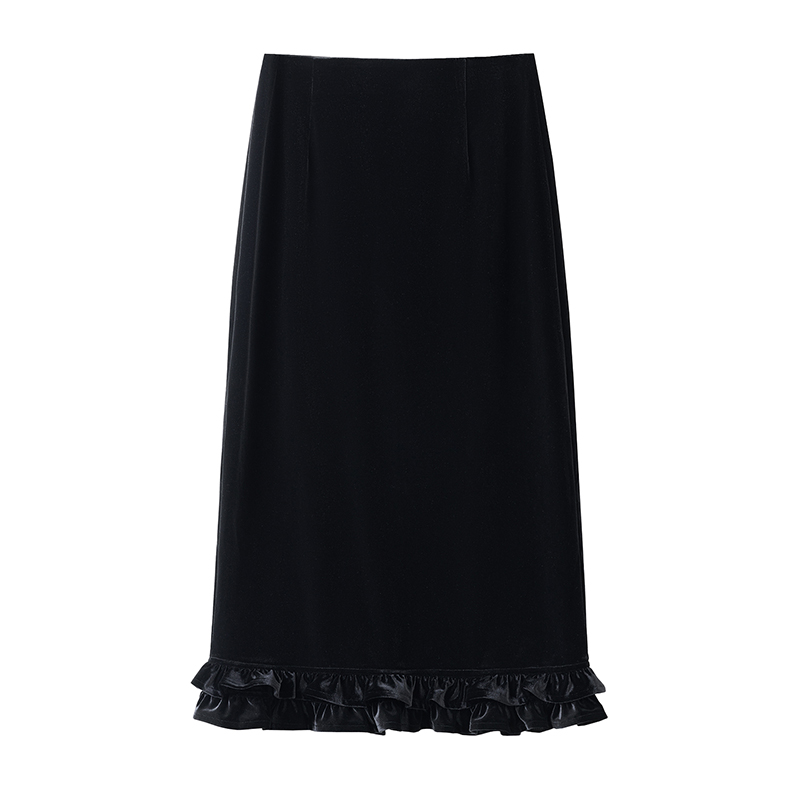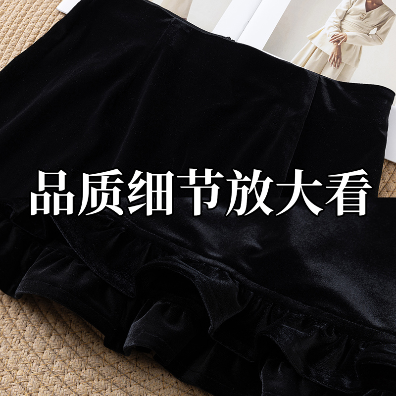 高腰后开叉优雅包臀裙 时尚 轻奢丝绒气质花边半身裙女2025秋季 新款