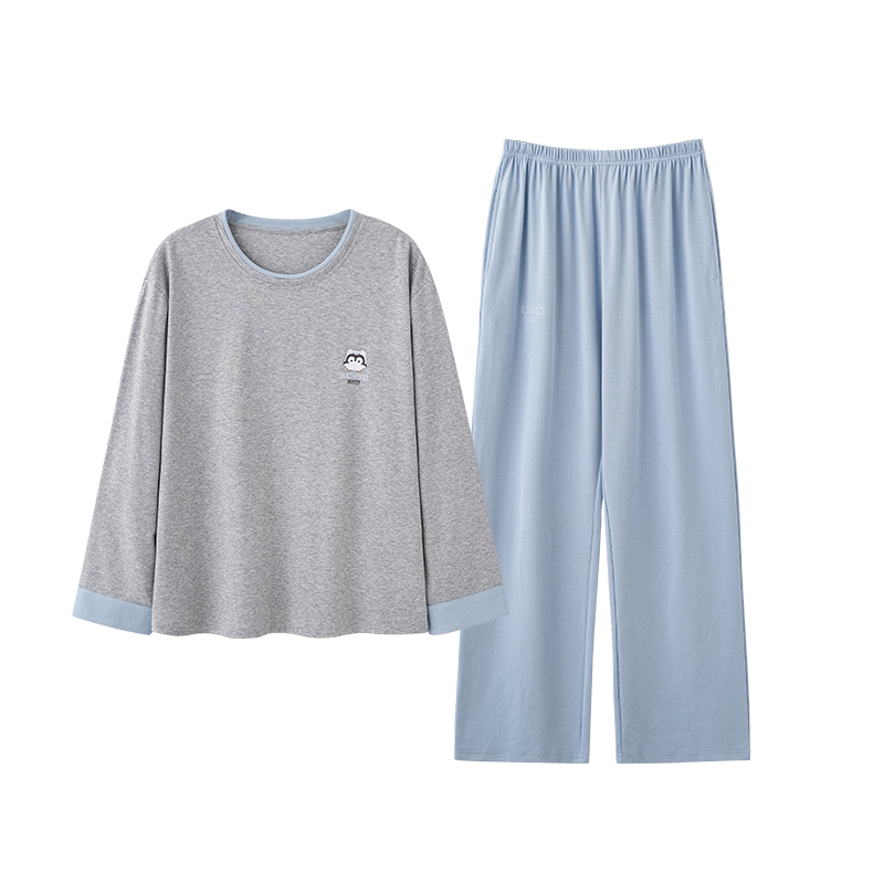 带胸垫一体全棉家居服套装 猫人纯棉睡衣女春秋季 长裤 长袖 2025新款