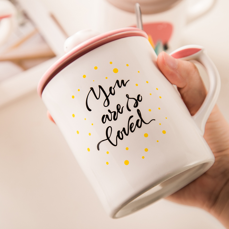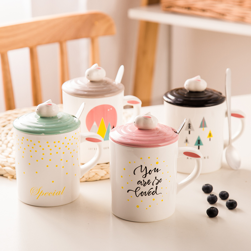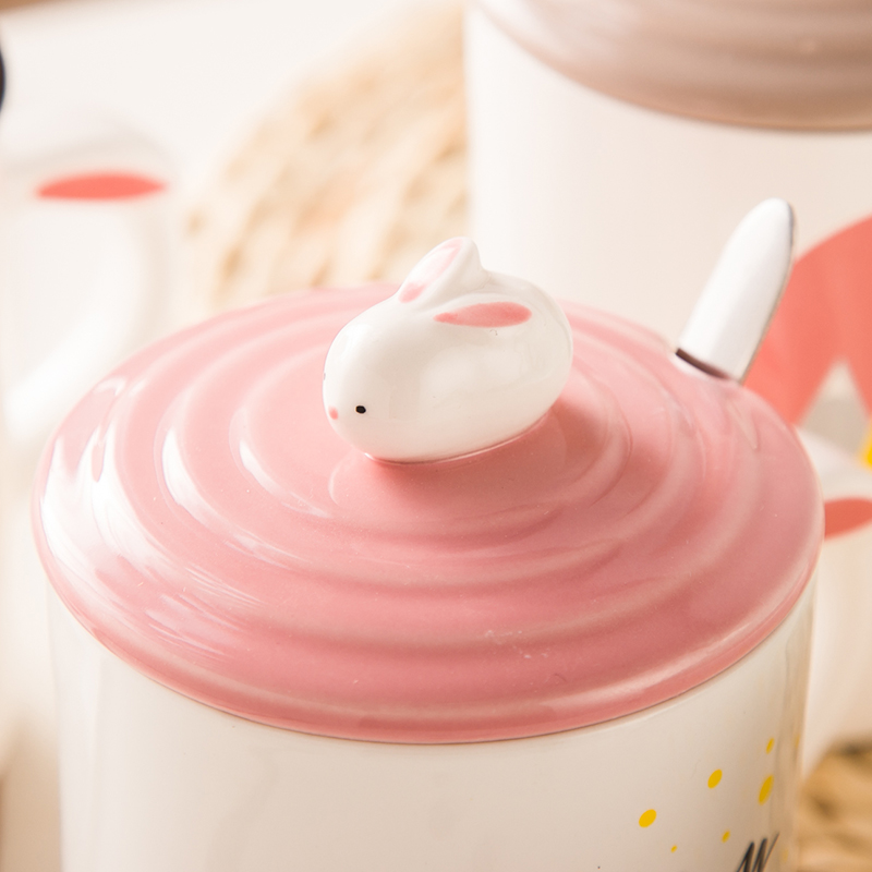 马克杯陶瓷水杯 兔子水杯带杯盖勺情侣杯卡通咖啡果汁奶茶杯