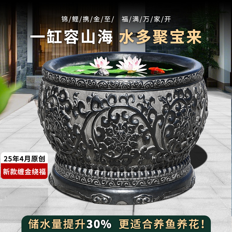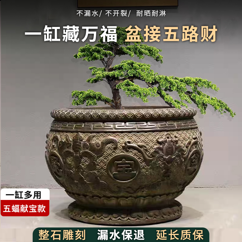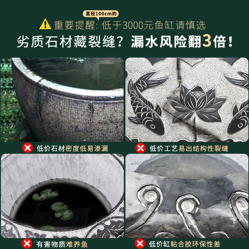 石雕鱼缸庭院天然青石花盆户外养鱼圆形摆件门海大缸石头水缸石缸