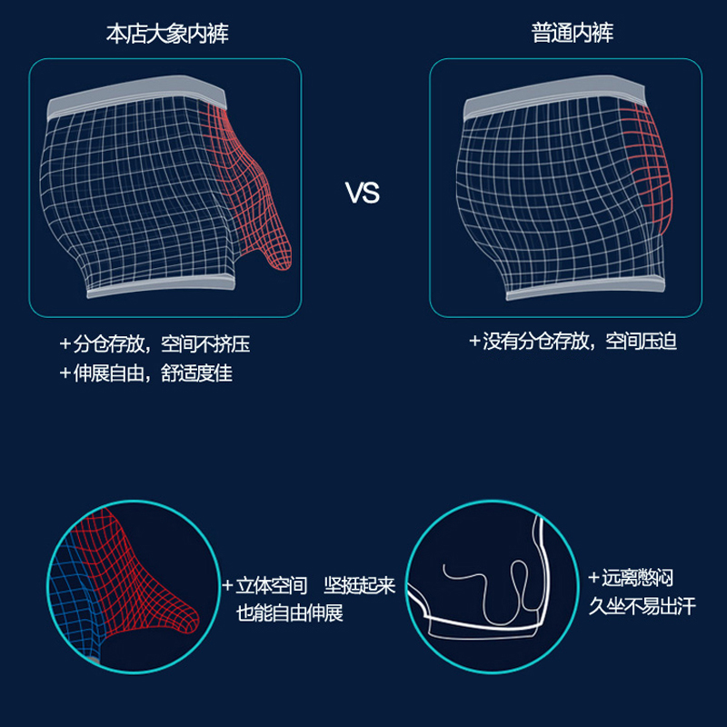 大象内裤 奥元 男士 阴囊托枪弹分离大象鼻莫代尔性感平角裤 素3条装