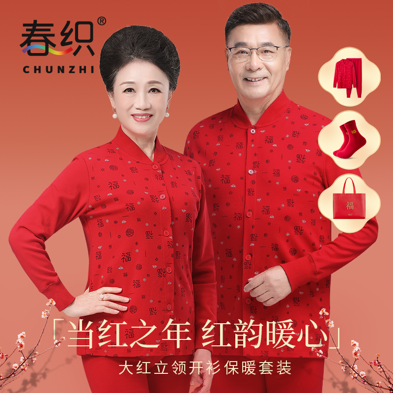 加厚中老年妈妈老人保暖内衣男 奶奶开衫 春织本命年秋衣秋裤 女套装