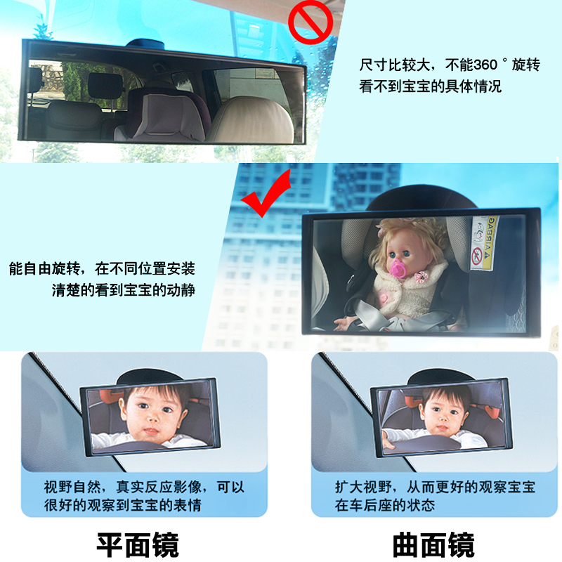 快美特 宝宝汽车儿童车内辅助镜观后镜 安全座椅后坐扩展观察镜