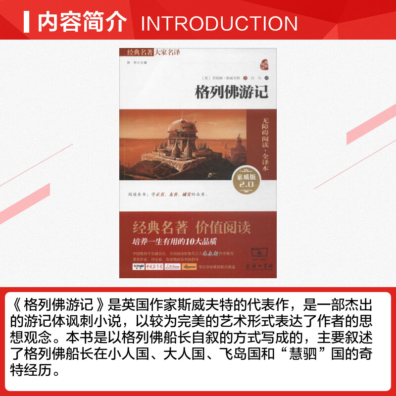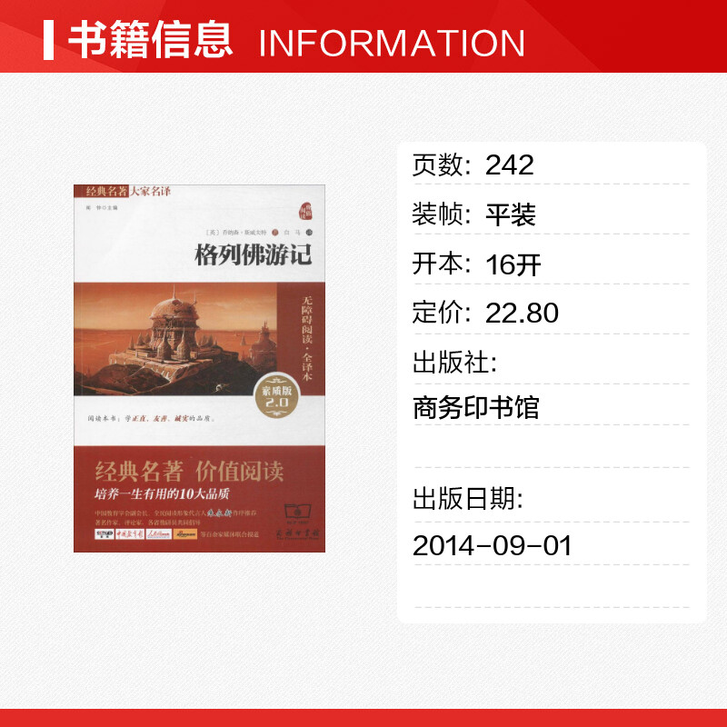 新华书店正版 商务印书馆 英 译 著 著;白马 无障碍阅读·全译本 乔纳森·斯威夫特 图书籍 格列佛游记素质版 世界名著文教 2.0