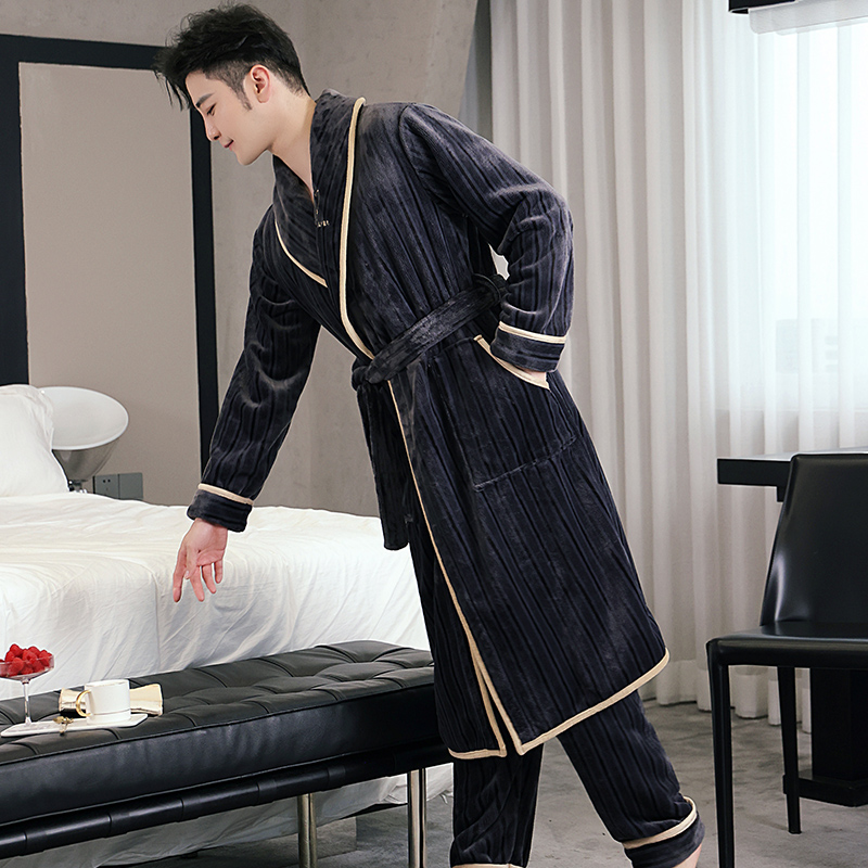 保暖男款 冬季 秋冬珊瑚绒睡衣男 浴袍加厚加绒秋冬情侣长款 睡袍男士