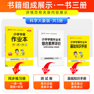 科学小学学霸作业本三年级四五六年级上册下册课本同步练习册知识点提优训学生练习题达标测试卷子天天练PASS绿卡图书 大象版