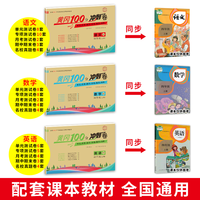 小学生四年级试卷测试卷全套下册上册语文数学英语黄冈100分冲刺卷部编人教版 应用题计算题听力阅读理解专项基础训练补充题密卷4上
