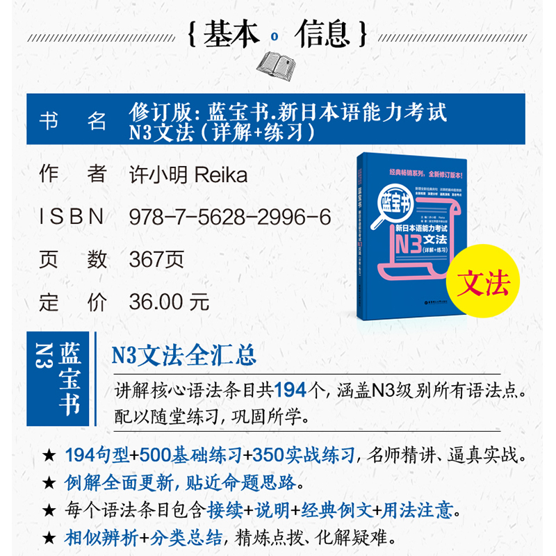 文法 练习 详解 日语N3蓝宝书 红蓝宝 红蓝宝书1000题新日本语能力考试N3文字词汇 练习经典 新日语能力测试N3级日语考试 红宝书
