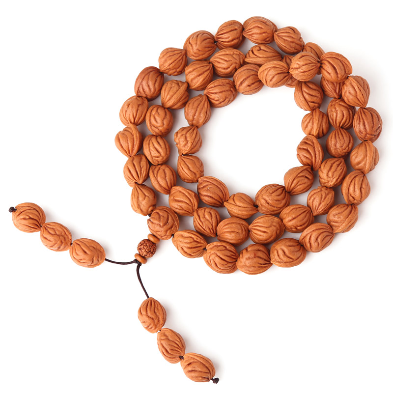 文玩手串火龙纹核桃山桃核手持54颗佛珠念珠长串汽车挂件