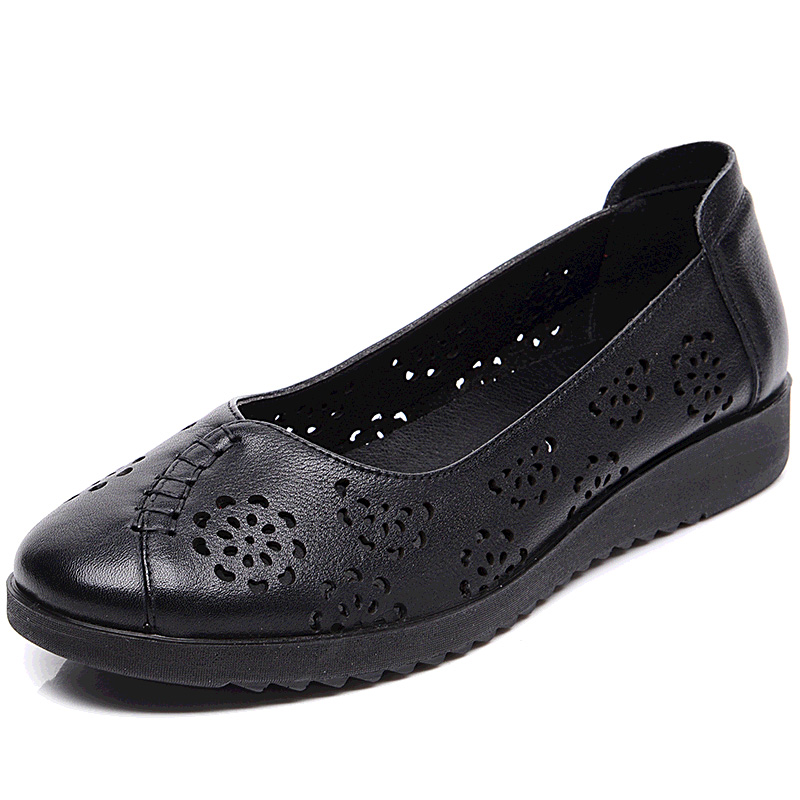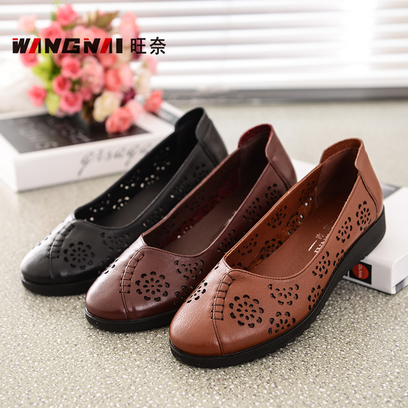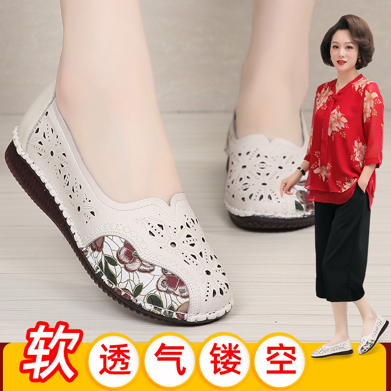 中老年女鞋 软底大码 清仓 镂空洞洞中年女凉鞋 旺奈民族风真皮妈妈鞋