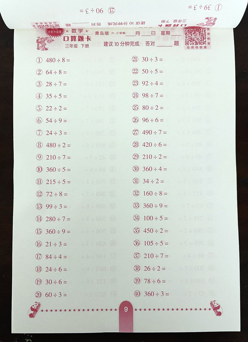 数学口算题卡 六三学制 应用题天天练 青岛版 心算速算巧算提高运算能力强化速度闫飞主编 三年级下册 2024年新版