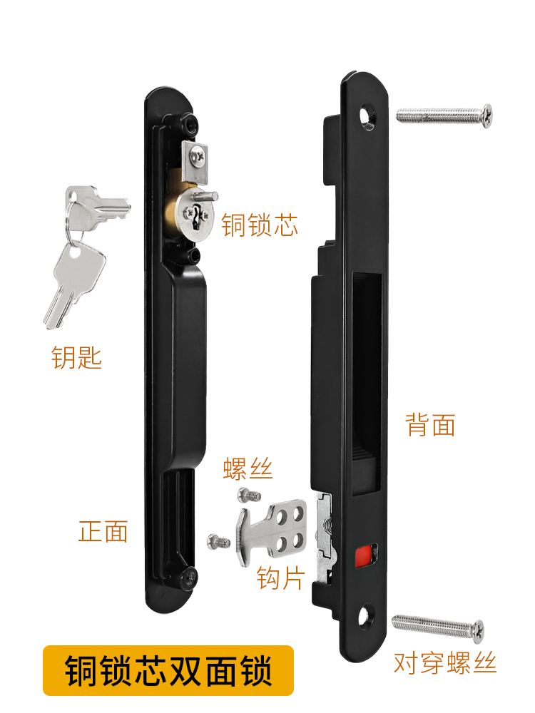 铝合金移门锁扣90门窗钩锁老式 阳台推拉门勾锁玻璃门条形锁栓搭扣