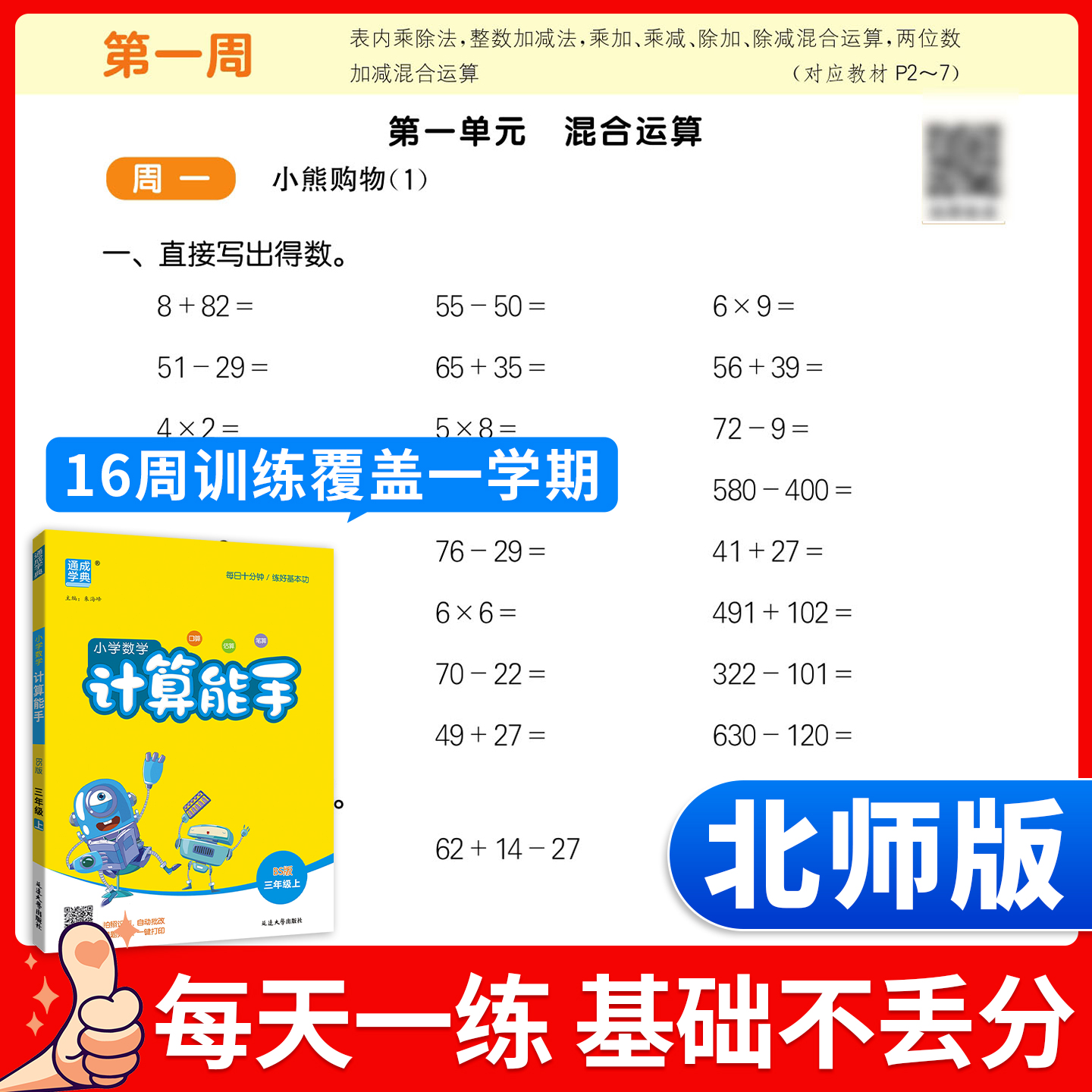 北师大版 小学数学计算能手五上六上二年级上册四上一三年级下计算小达人高手数学每日一练同步训练计算强化训练口算天天练练习题册