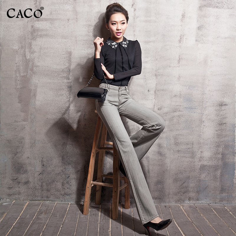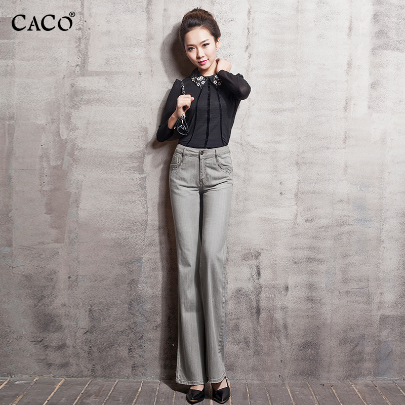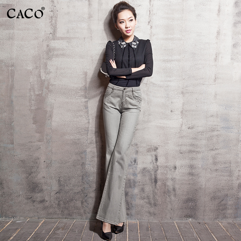女加绒紧身喇叭裤 乔栈秋冬爆款 美人鱼双V收腰弹力大摆微喇牛仔裤
