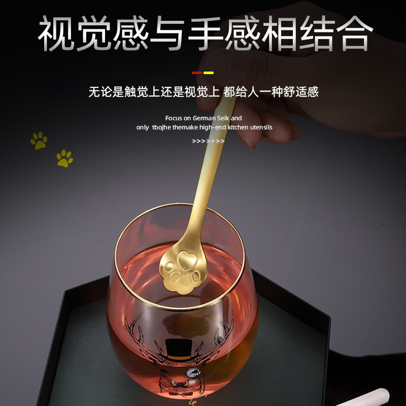 猫爪304不锈钢长柄冰勺茶勺创意韩式 镀金茶勺家用甜品搅拌咖啡勺