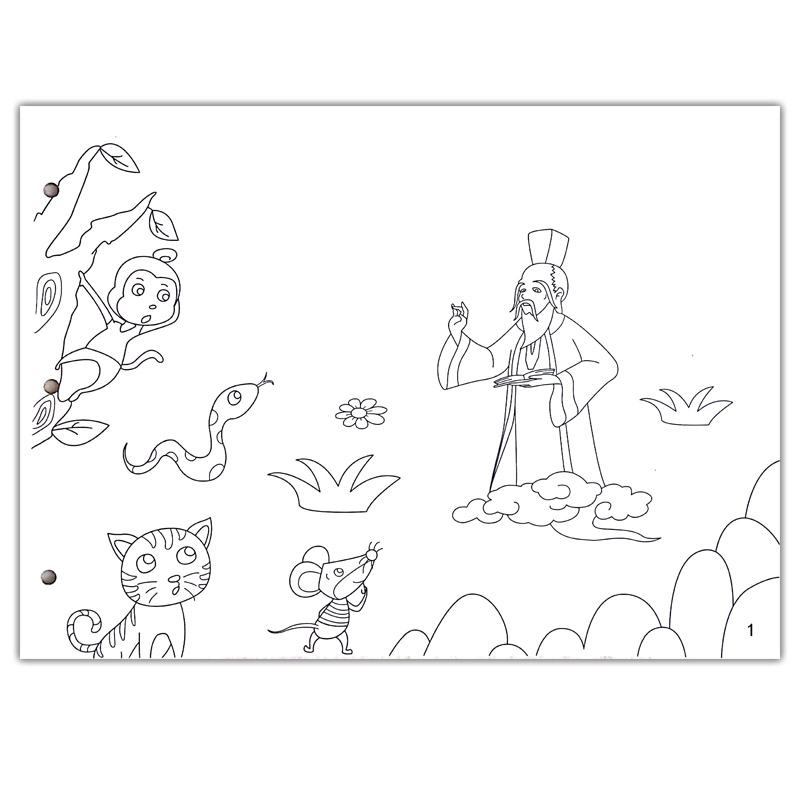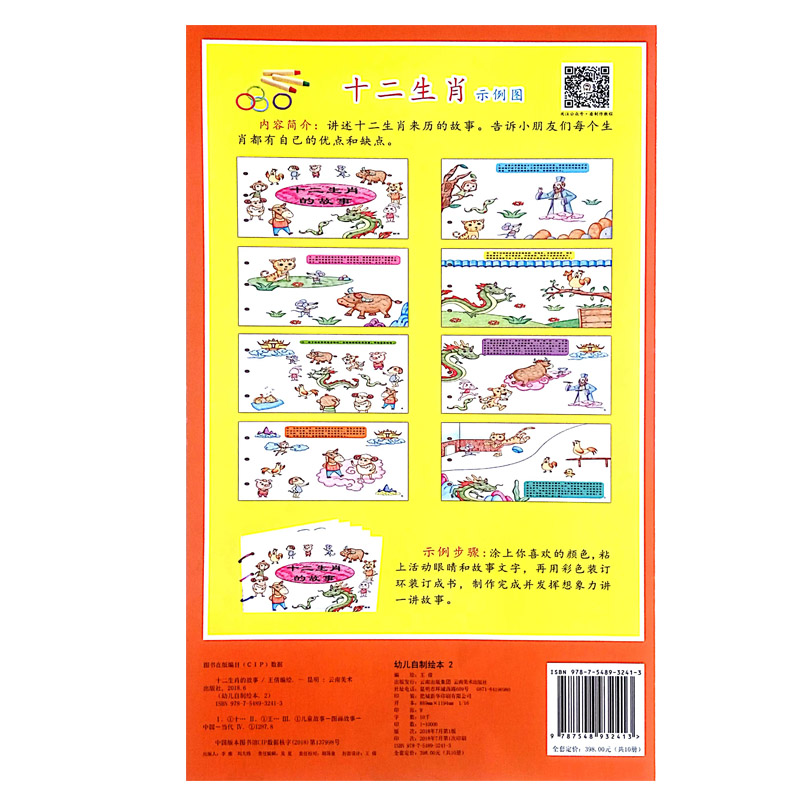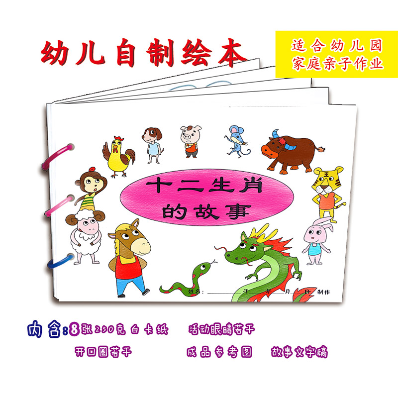 绘画图书绘本3 手工自制绘本A4白卡涂色粘贴绘本幼儿园亲子手工DIY材料包幼儿绘本涂色书 6岁幼儿园手工家庭作业 故事 十二生肖