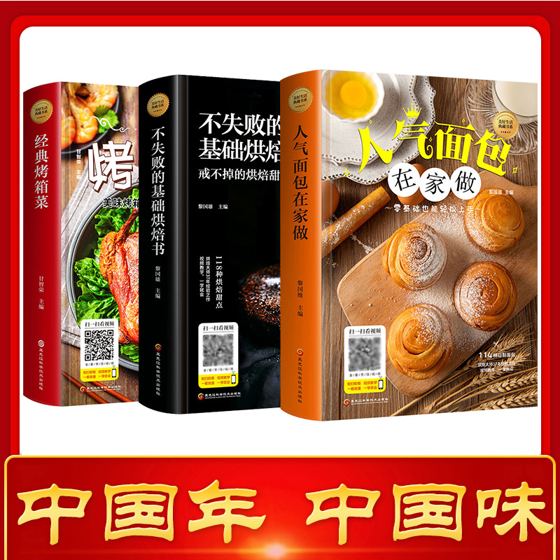 烤箱菜 赠视频 经典 人气面包在家做 新手入门从零开始学烘焙甜点西点书籍面包做法教程书配料蛋糕制作菜谱书籍 全3册基础烘焙书籍