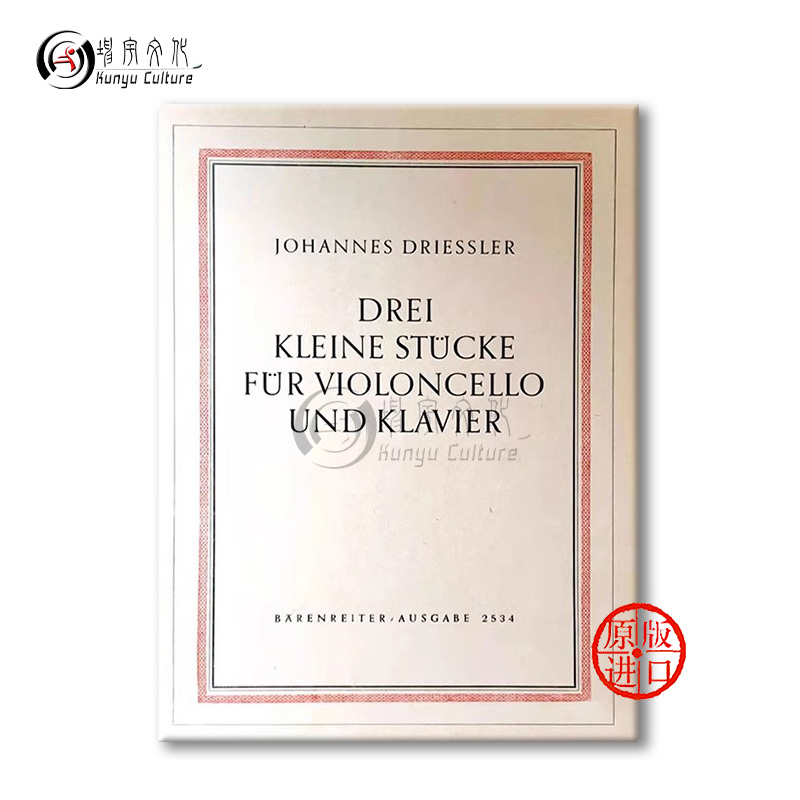 kleine 三个大提琴小片断op8 Driessler 德里斯勒 Stucke Klavier 骑熊士原版 Violoncello 1附钢伴 BA2534 乐谱书 fur Drei
