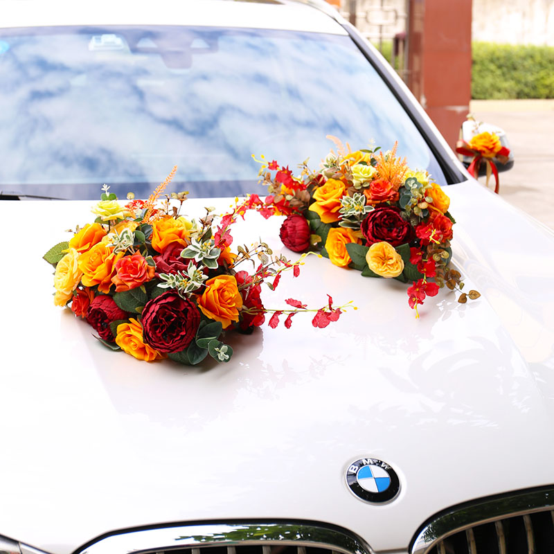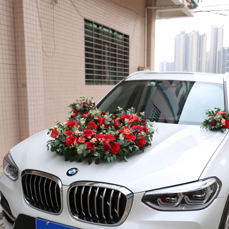 布置结婚庆用品 饰套装 花车装 饰结婚仿真玫瑰花车头花唯美主婚车装