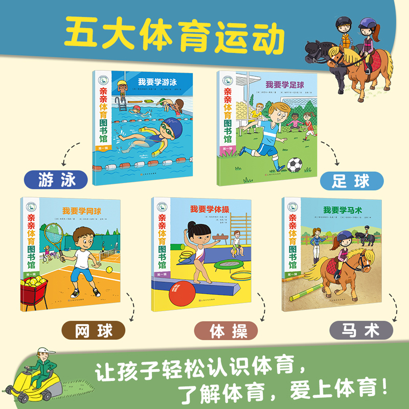 儿童科普绘本图画书 亲亲体育图书馆第一辑 儿童百科全书 6岁 亲子早教启蒙 幼儿绘本阅读 足球网球游泳体操马术 全5册