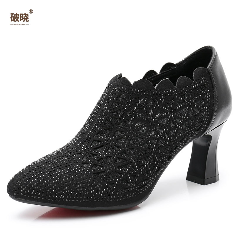 镂空网靴春季 新款 气质小短靴网纱高跟鞋 小码 3233 水钻凉鞋 鞋 女夏季