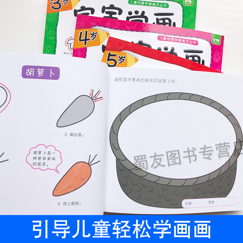 幼儿园大小中班美术启蒙着色本阶梯学画画 儿童创意学画美术丛书 少儿创意涂鸦绘画本填色简笔画 全4册 宝宝学画套装
