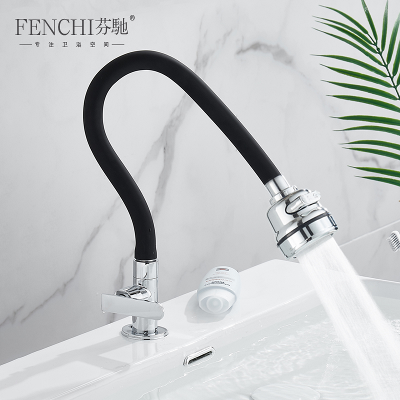 芬驰厨房单冷水龙头全铜万向旋转洗菜盆水槽面盆阳台洗衣柜拖把池