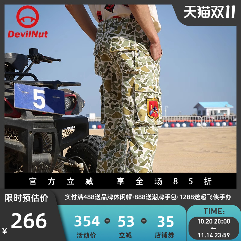 秋季 新款 男女情侣迷彩工装 DEVIL 壮志凌云 潮牌 裤 STY NUT恶魔