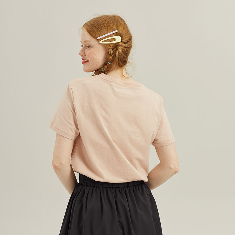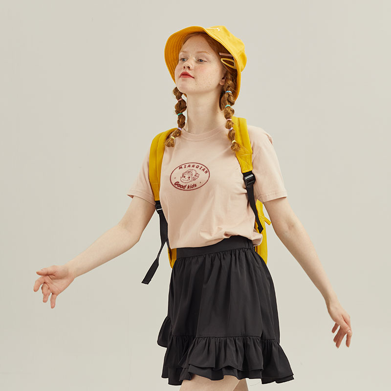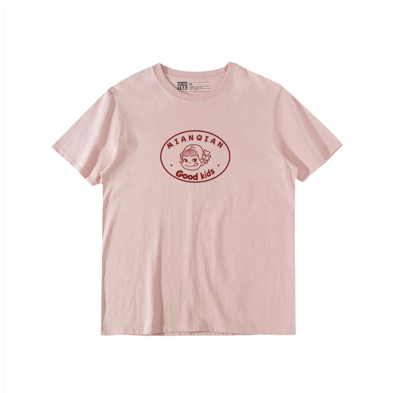 可爱少女牛奶妹藕粉色正肩t恤女短袖 上衣夏 小个子纯棉半袖
