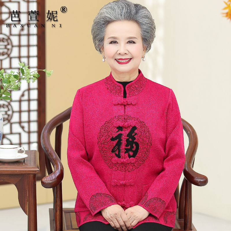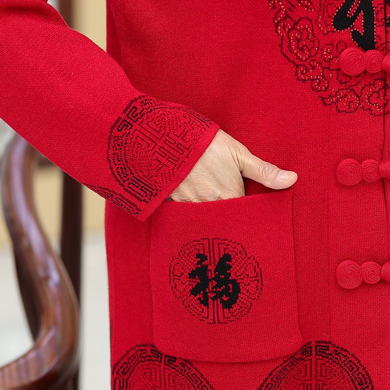 针织开衫 中老年人女奶奶毛衣外套大码 老人衣服本命年妈妈秋冬唐装