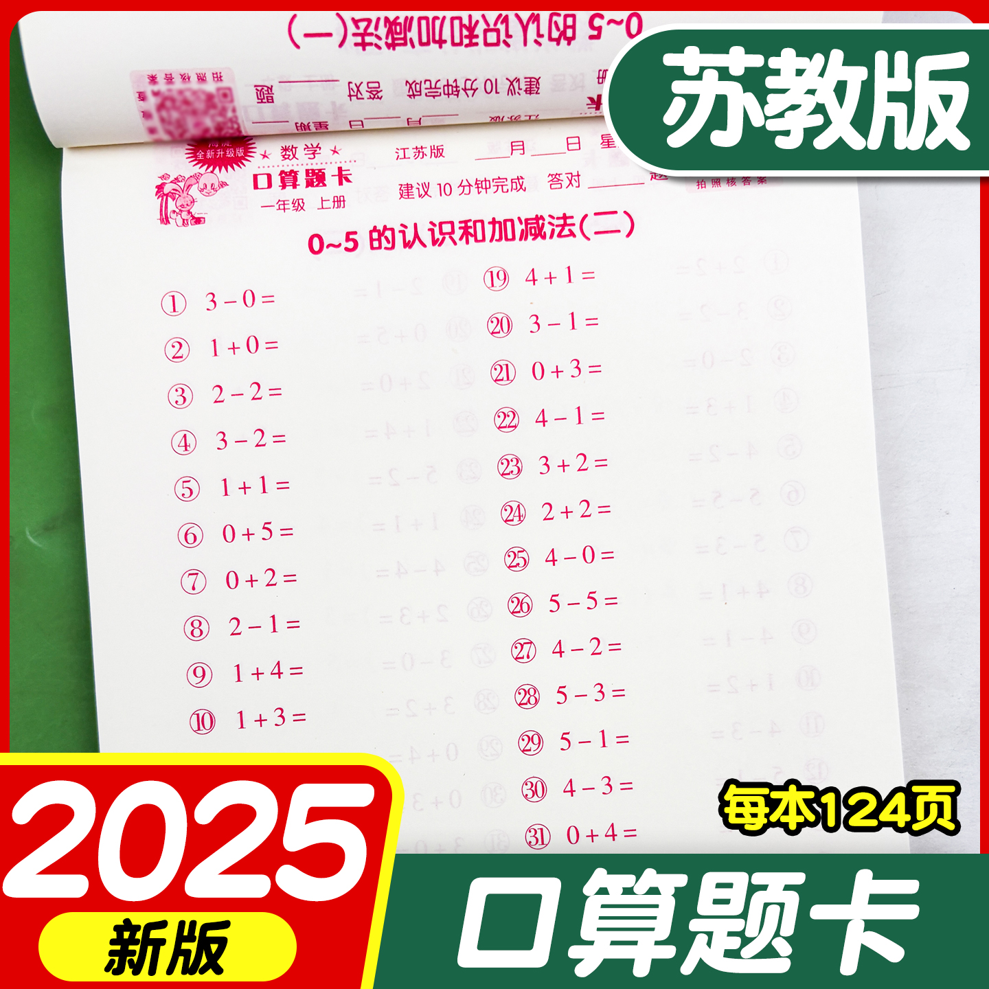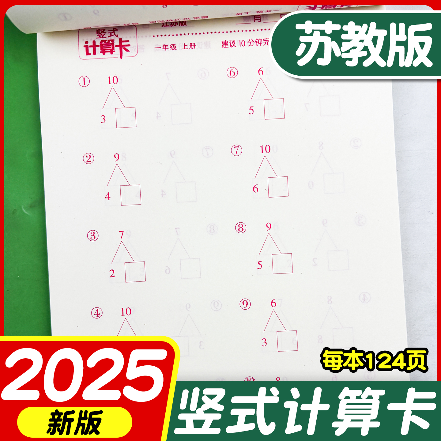 应用题竖式 口算题卡一年级二年级三年级四年级五六年级上册下册数学江苏版 计算卡口算天天练专项强化训练练习题 苏教版 2025新版