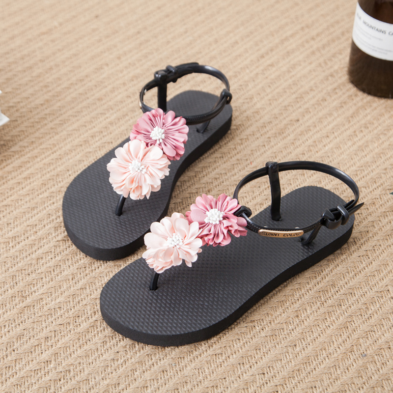女夏季 凉鞋 新款 花朵人字拖女平底海边沙滩鞋 SUNNY 女鞋 COLOR韩版
