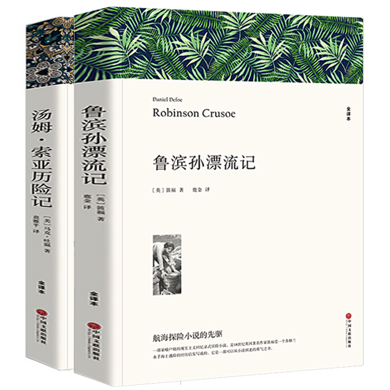 15岁初中生青少年课外阅读书籍 世界文学名著12 鲁滨逊漂流记汤姆索亚历险记全套两册五六七八年级鲁滨孙中文版 无删减全译本正版
