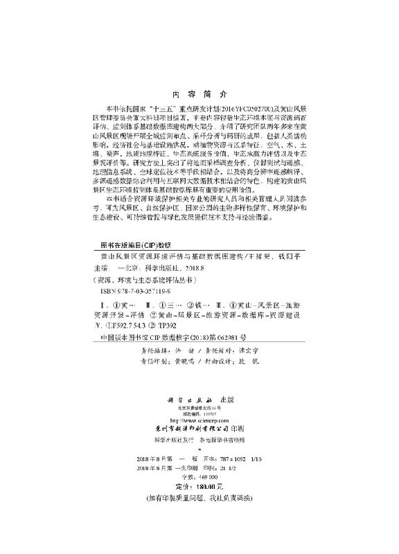 黄山风景区资源环境评估与基础数据库建构科学出版 社