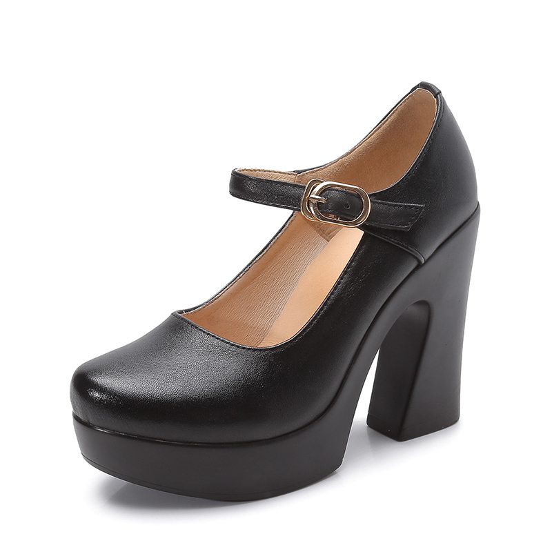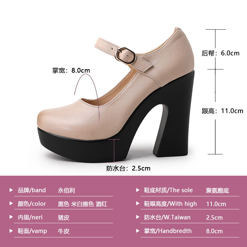 单鞋 羊皮浅口法式 千百度粗高跟鞋 异形跟职业通勤大码 静音系列