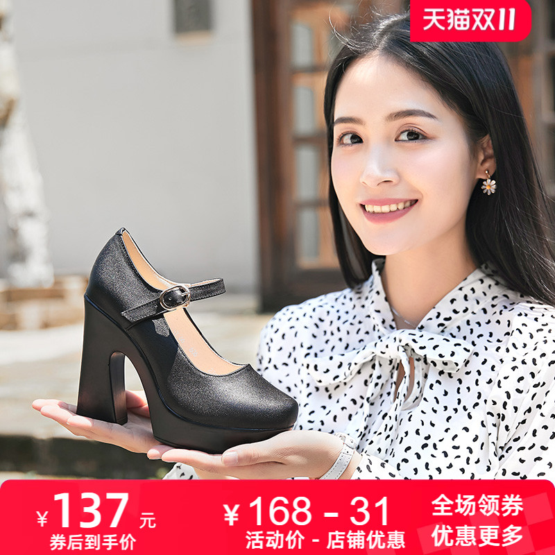 新款 康莉春季 高跟单鞋 女方头真皮通勤时尚 子 方扣浅口鞋 博主推荐