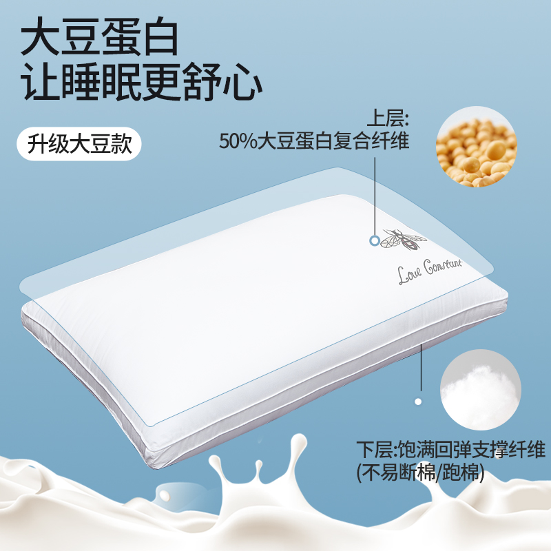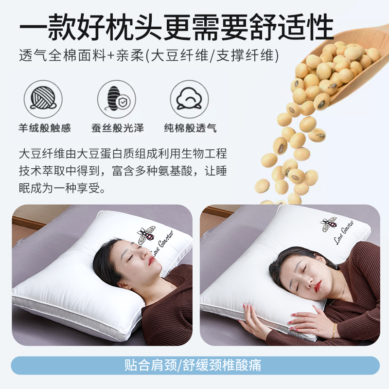 全棉抑菌防螨枕芯一对装 大豆纤维成人家用枕头可水洗纯棉酒店整头