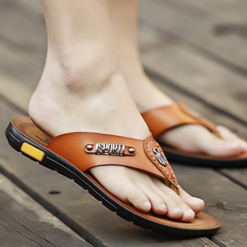 潮流室外穿男拖鞋 皮拖鞋 凉鞋 沙滩鞋 夏 男夏天人字拖男防滑软底男士
