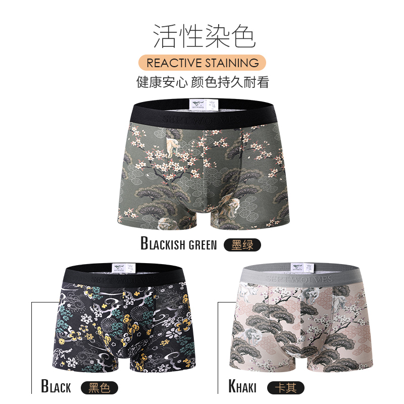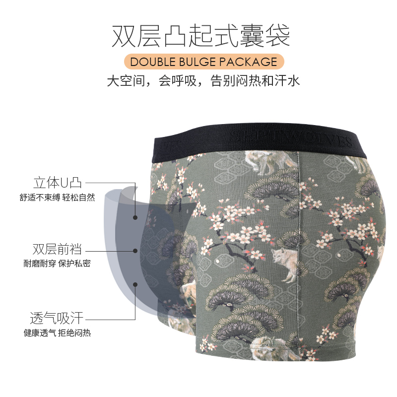 男士 时尚 四角裤 潮流个性 肉青年 纯棉宽松舒适透气平角裤 七匹狼内裤