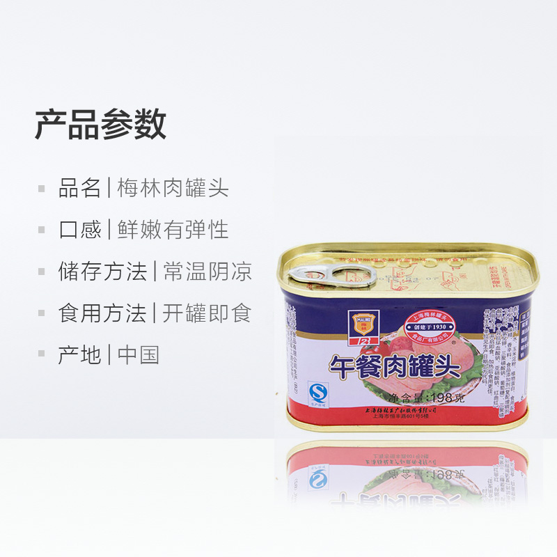 梅林午餐肉罐头198g 罐涮火锅螺蛳粉酸辣粉三明治火腿开罐即食