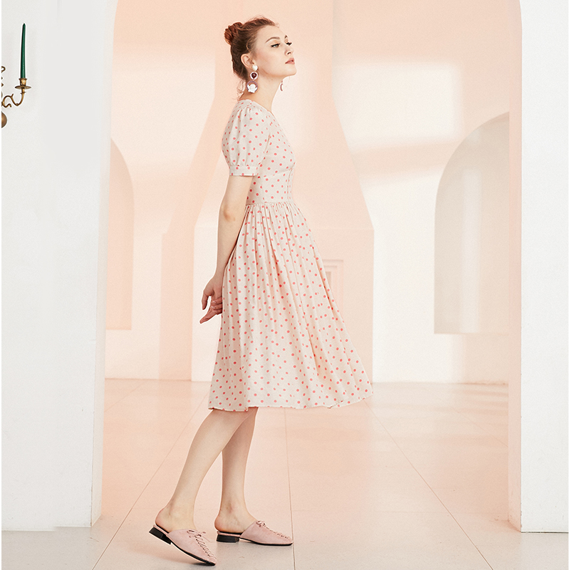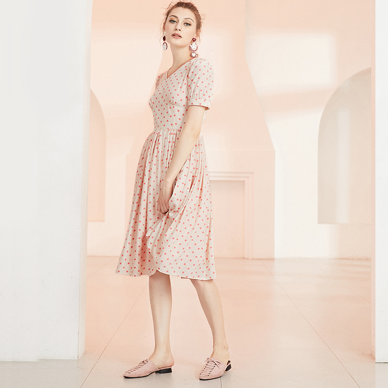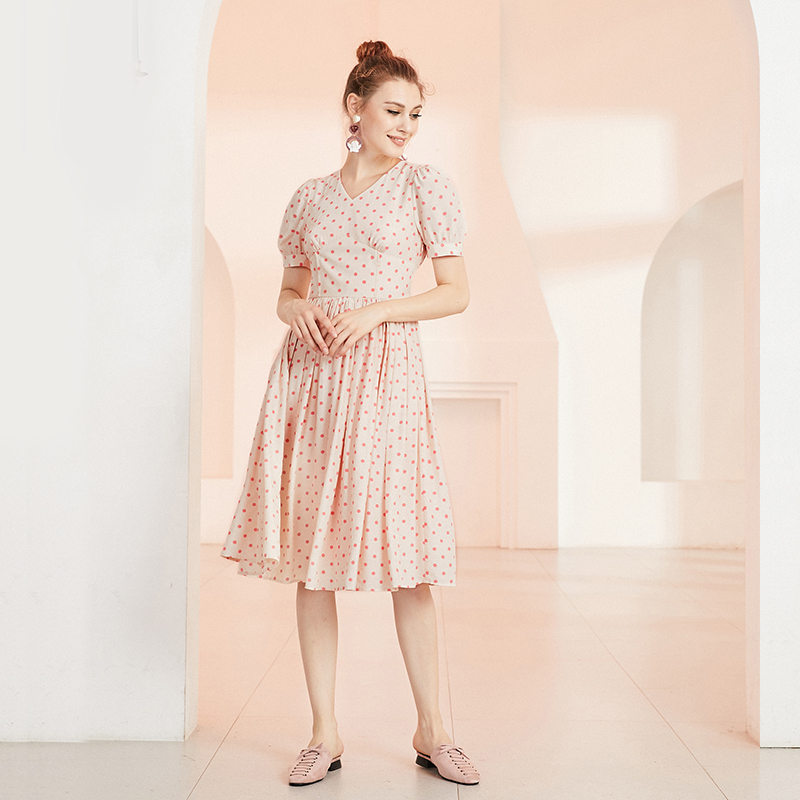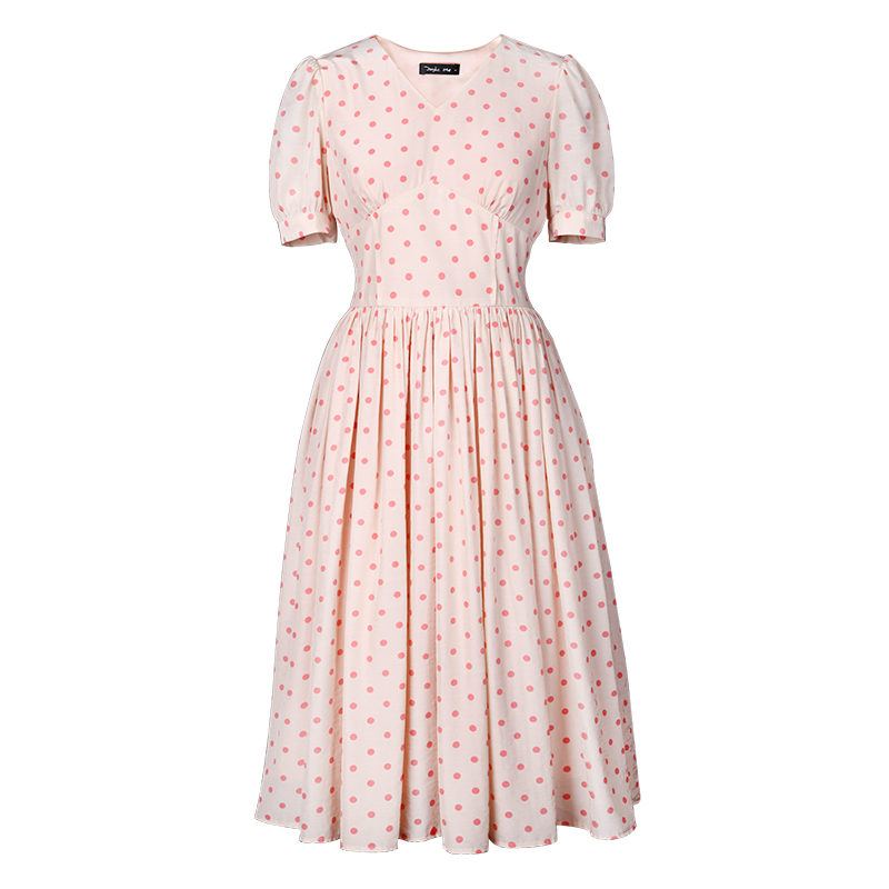 张婧仪同款 圆领连衣裙拼接假两件A1FAF2922 朝夕太平鸟三醋酸法式