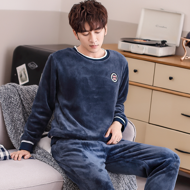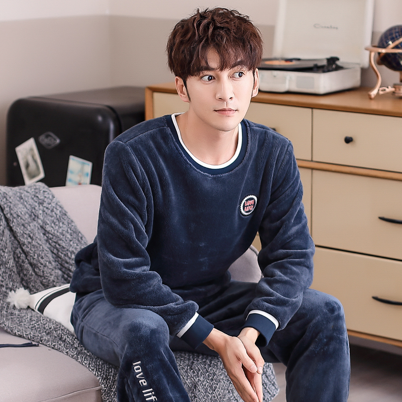 保暖珊瑚绒海岛绒家居服套装 加厚加绒套头长袖 睡衣秋冬季 轩靓男士