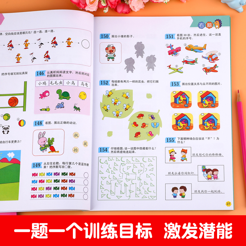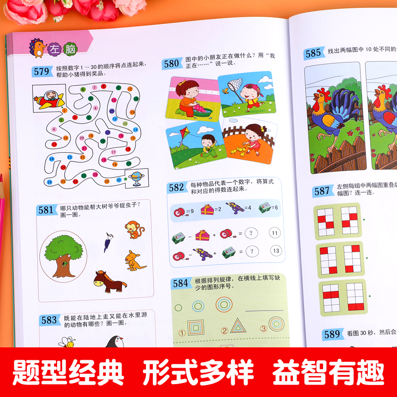 思维训练游戏大书 5岁宝宝全脑开发综合能力训练书 幼儿早教书籍趣味数学启蒙逻辑思维训练书籍益智图书 左右脑智力开发600题