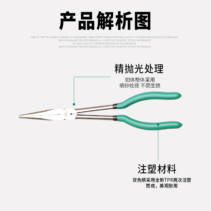 豪森工具尖嘴钳尖头加长夹持钳超长型长嘴钳子280mm弯嘴垃圾O型钳