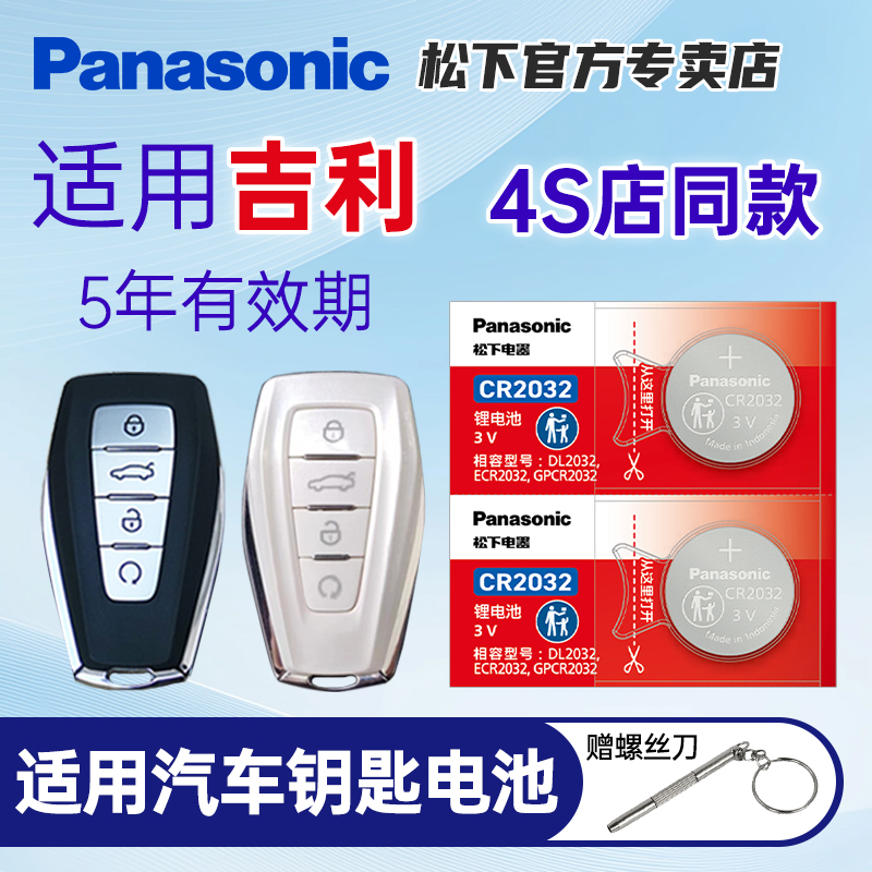 适用吉利帝豪第四代GS星瑞GL博越远景x3领克缤瑞x6几何A缤越C遥控器E汽车钥匙电池CR2025松下CR2032纽扣电子