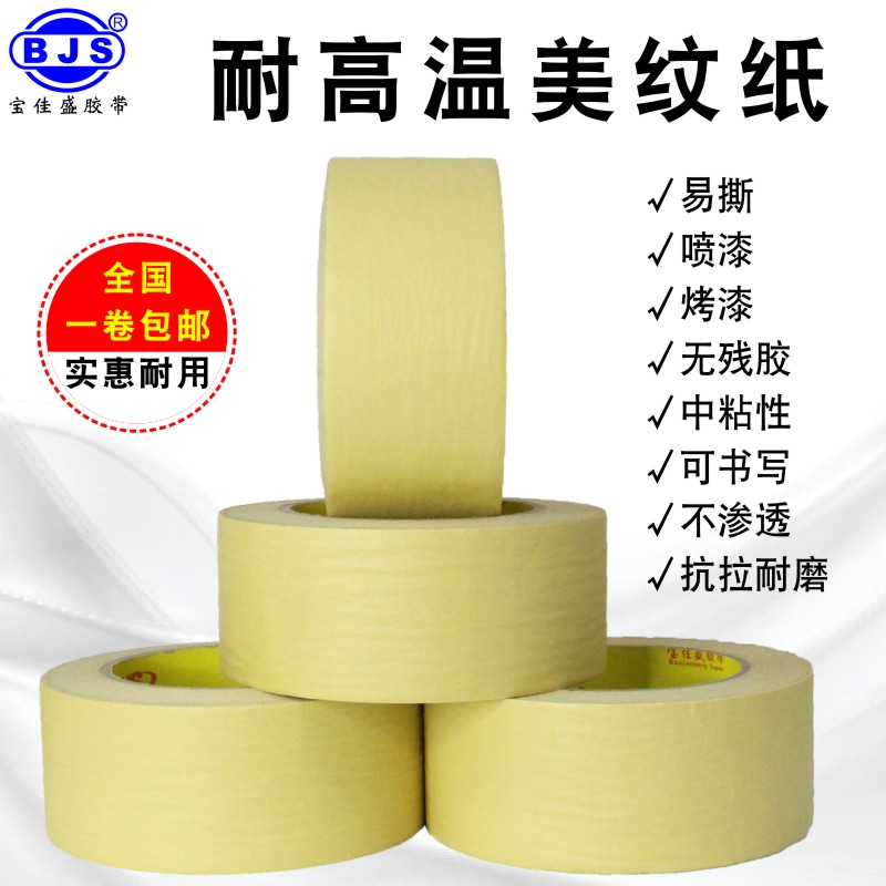 耐高温美纹纸胶带批发汽车喷漆遮蔽保护膜美纹纸不残胶高粘无痕外墙墙面真石漆装 修美术生专用纸胶带弱粘性