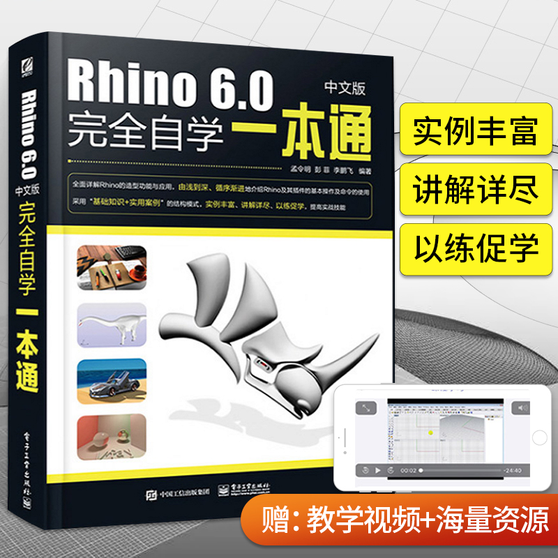 Rhino教程书Rhino6.0中文版 犀牛工业产品动画场景概念造型设计工具书三维机械曲面建模视图操作绘制3dsmax教程书籍 完全自学一本通