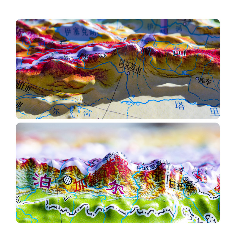 3d立体世界地形 中国地形地图2024新 2张套装 约60cmx45cm 中小学生地理学习专用 中国地图世界地图挂图 3d立体3样赠品