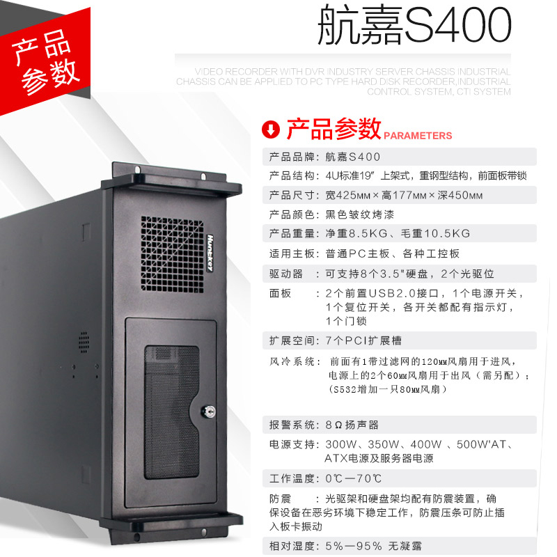 航嘉S400 4u工控机箱电脑机箱录像机用DVR行业服务器机箱工控机箱