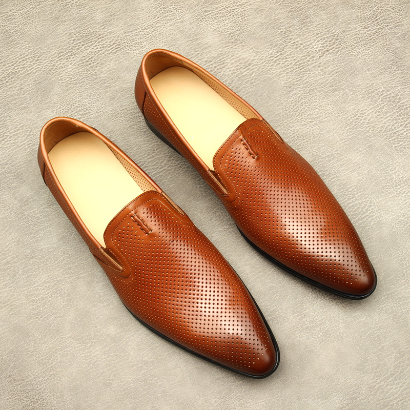 男士 商务正装 皮鞋 打孔透气凉鞋 2025男鞋 真皮休闲镂空皮鞋 新款